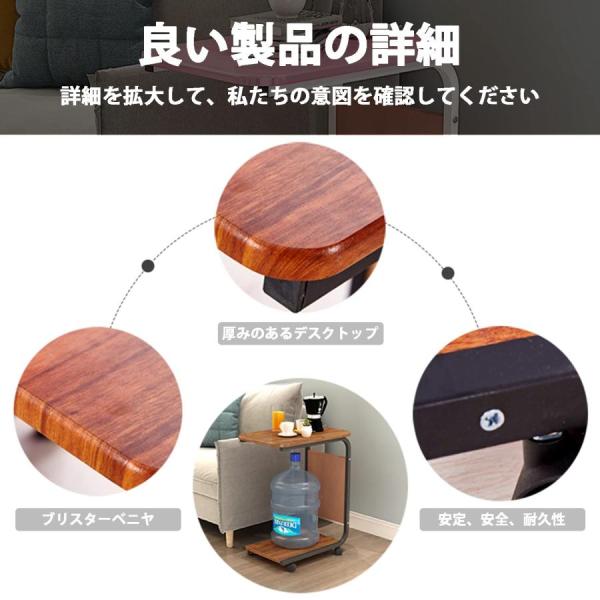 【コ字型テーブル】サイドテーブル キャスター付きはコ字型、ソファやベッドの下のスペースに入れ、隙間に差し込んでも使えます。ソファのサイドテーブルやリビングのサイドテーブルとしても使えます。【おしゃれなサイドテーブル】シンプルなデザインでありながら、収納のニーズも満たしています。ほかのブランドより下段の棚板が多くなっていて、おしゃれで実用的です。【移動に便利】サイドテーブルを移動させたい場合には、便利な4つのキャスターが付属しています。2つのキャスターはロック可能で必要な位置に固定することができます。【より品質の高いサイドテーブル】天板は高品質の材料を採用しており、掃除しやすくて擦り傷に強いです。また、テーブルフレームは堅固な鋼【厳粛な約束】正直なAmazonの販売者として、発送時にパッケージの完全性を慎重にチェックし、完璧なパッケージをお送りします。パッケージを受け取った後にご不明な点がございましたら、お問い合わせください。