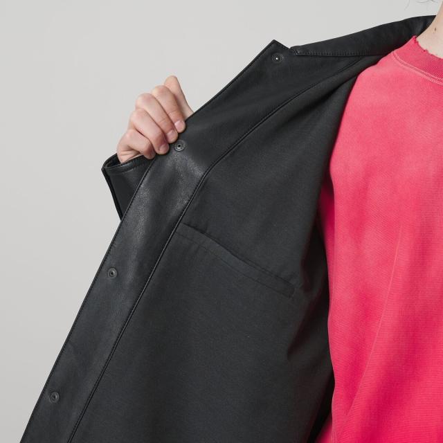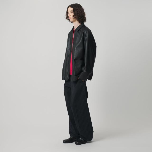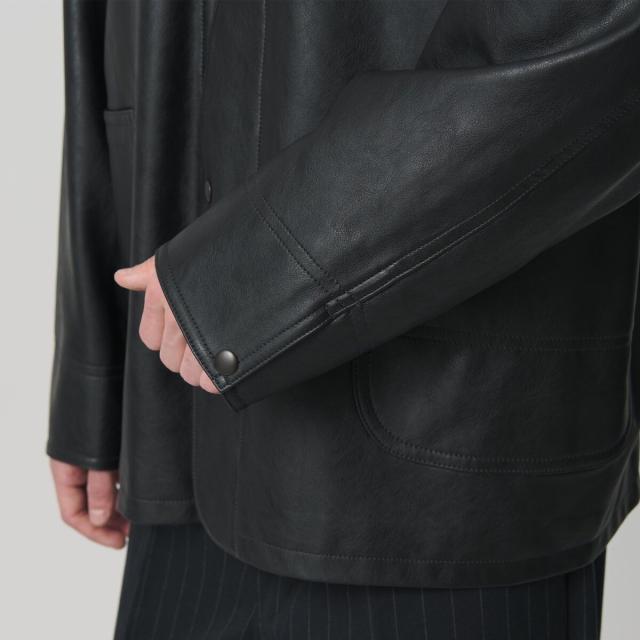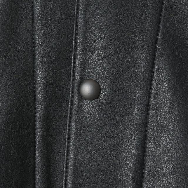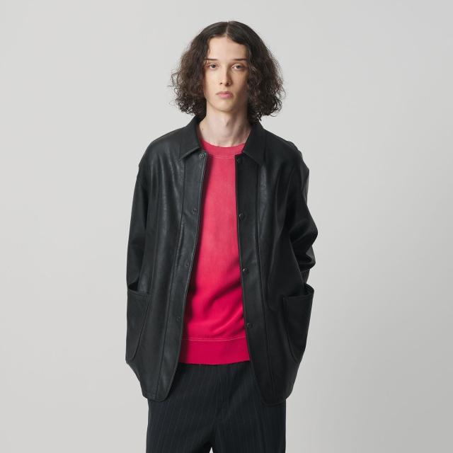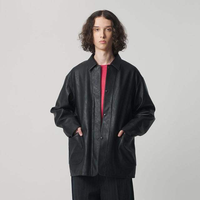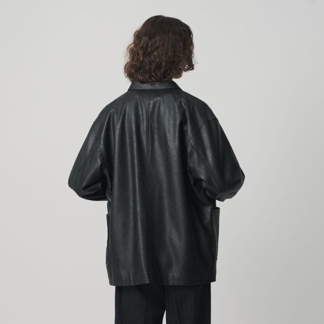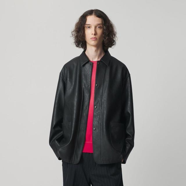 薄手ながらリアルレザーにも引けを取らない、上質な表情のレザーライク素材を使用したカバーオール。