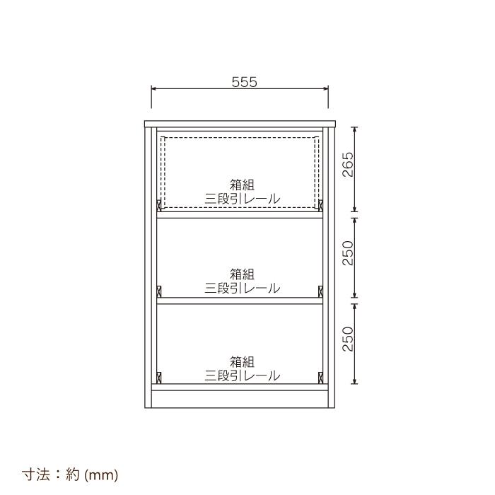 ■引き出しは3段引レール付き!