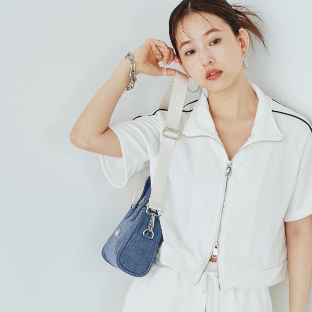 きらきらと輝く“ラインストーン”が入ったロゴメタルが印象的な新シリーズ。ブルーとライトブルーのデニム素材には綿素材を使用し、ブラックとアイボリーにはフェイクレザーを使用。