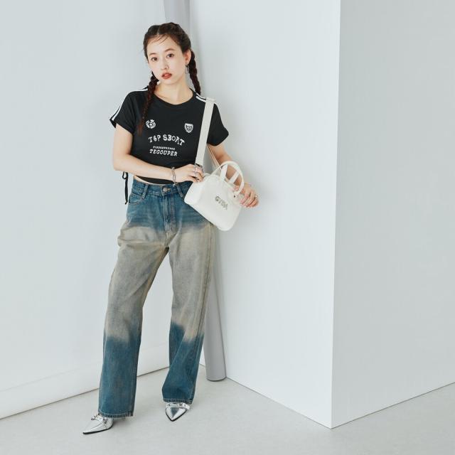 どこかスポーティさを兼ね備え、Y2Kファッションで人気の高いエナメルボストンバッグのディテールをそのままに使い勝手の良いデニム素材とフェイクレザーで仕上げたELGAES限定アイテム。