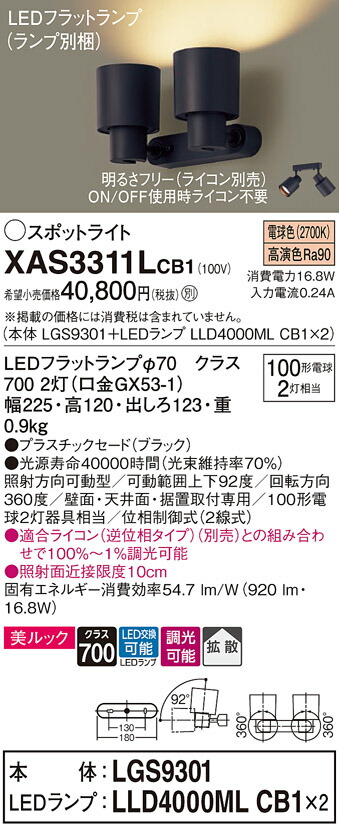 【メーカー品番】XAS3311LCB1(LGS9301 + LLD4000ML CB1×2)