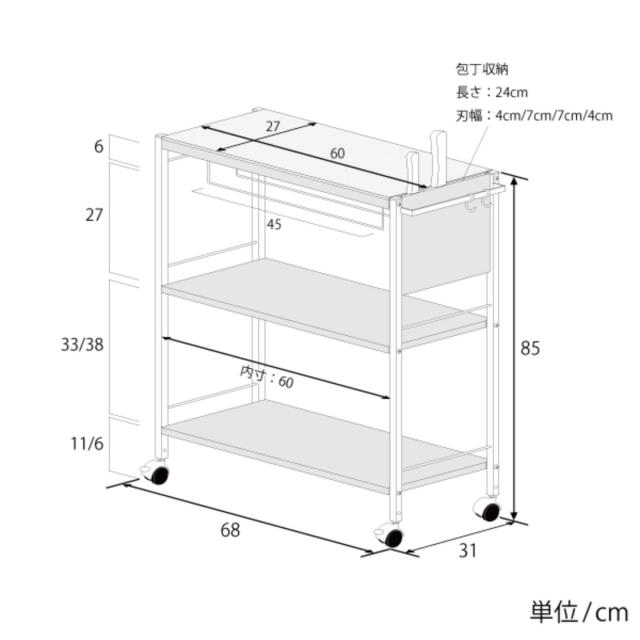 | 材質 | 本体:スチール(クロムメッキ) 棚:ステンレス 天板:人工大理石 |