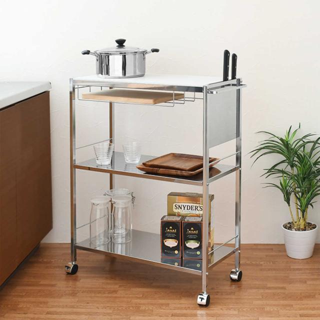 キッチンワゴン 人工大理石天板キッチン作業台 幅68cm ( キャスター付き 天板付き 大理石 ステンレス キッチンストッカー ワゴン キッチン ストッカー 日本製 作業台 隙間収納 キッチン収納 キッチン すきま収納)