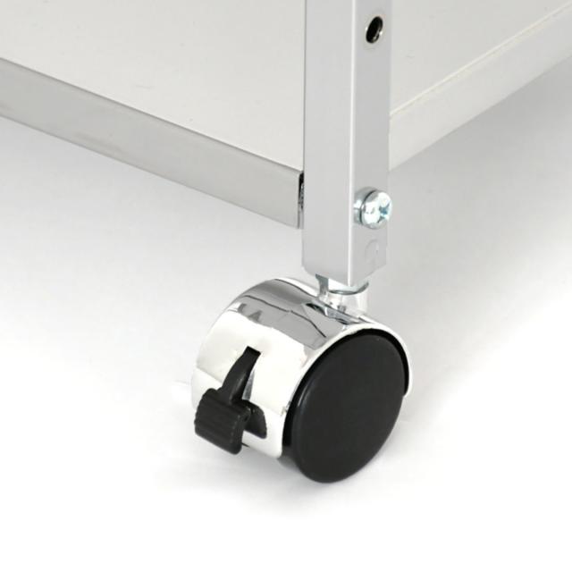 キャスター4個のうち2個はロック付きで、設置場所を固定することができます。